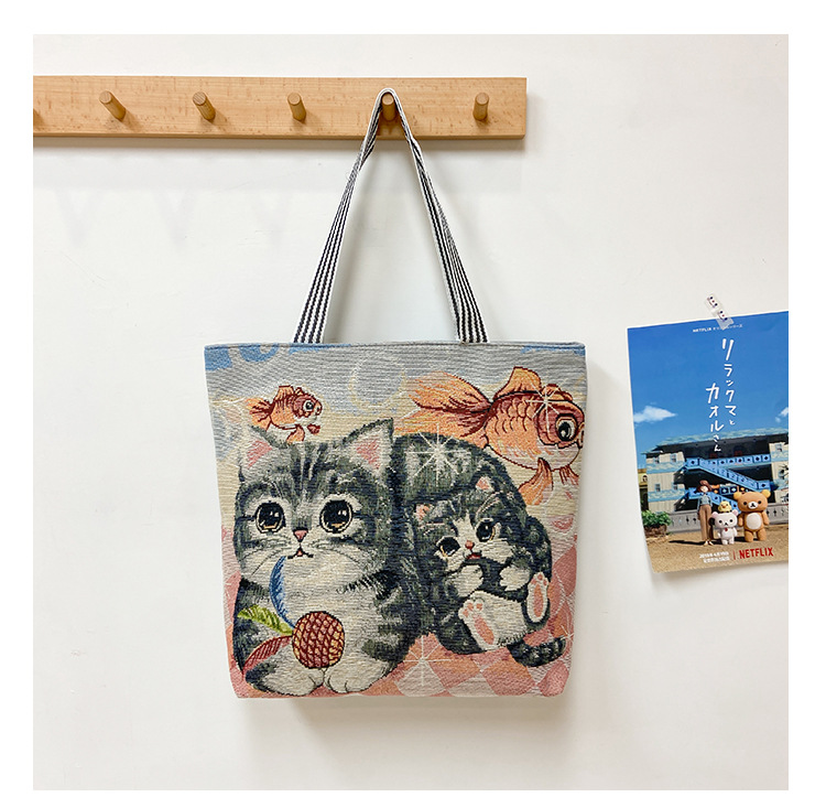 Cat Tote bag for girls with zipper, Fishy Cat Multifunctional Large Capacity, college, Korean