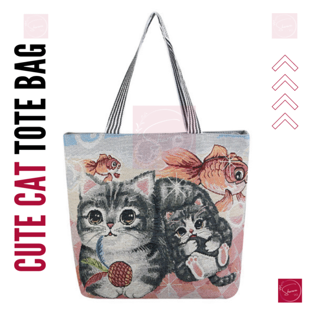 Be the first to review “Cat Tote bag for girls with zipper, Fishy Cat Multifunctional Large Capacity, college, Korean” Cancel reply