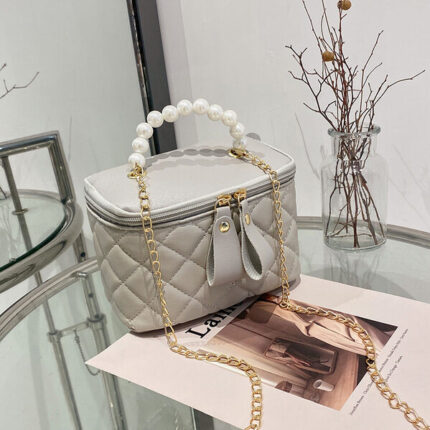 One-Shoulder Black Party Bag with Pearl Chain – High-Quality Design